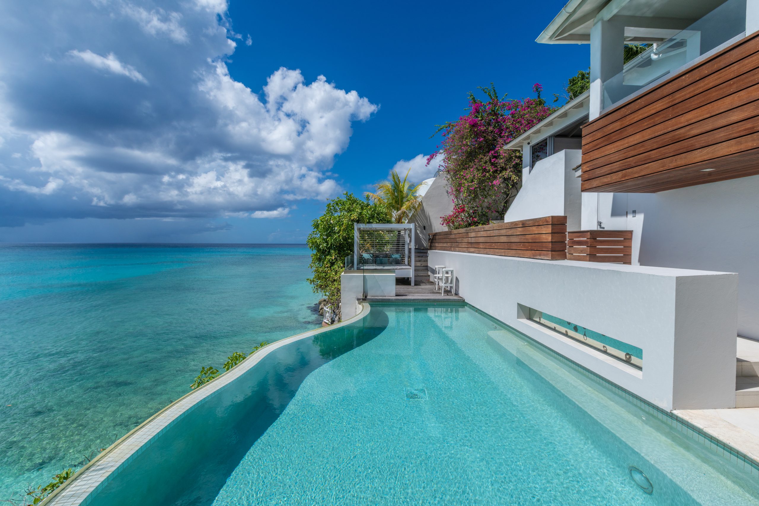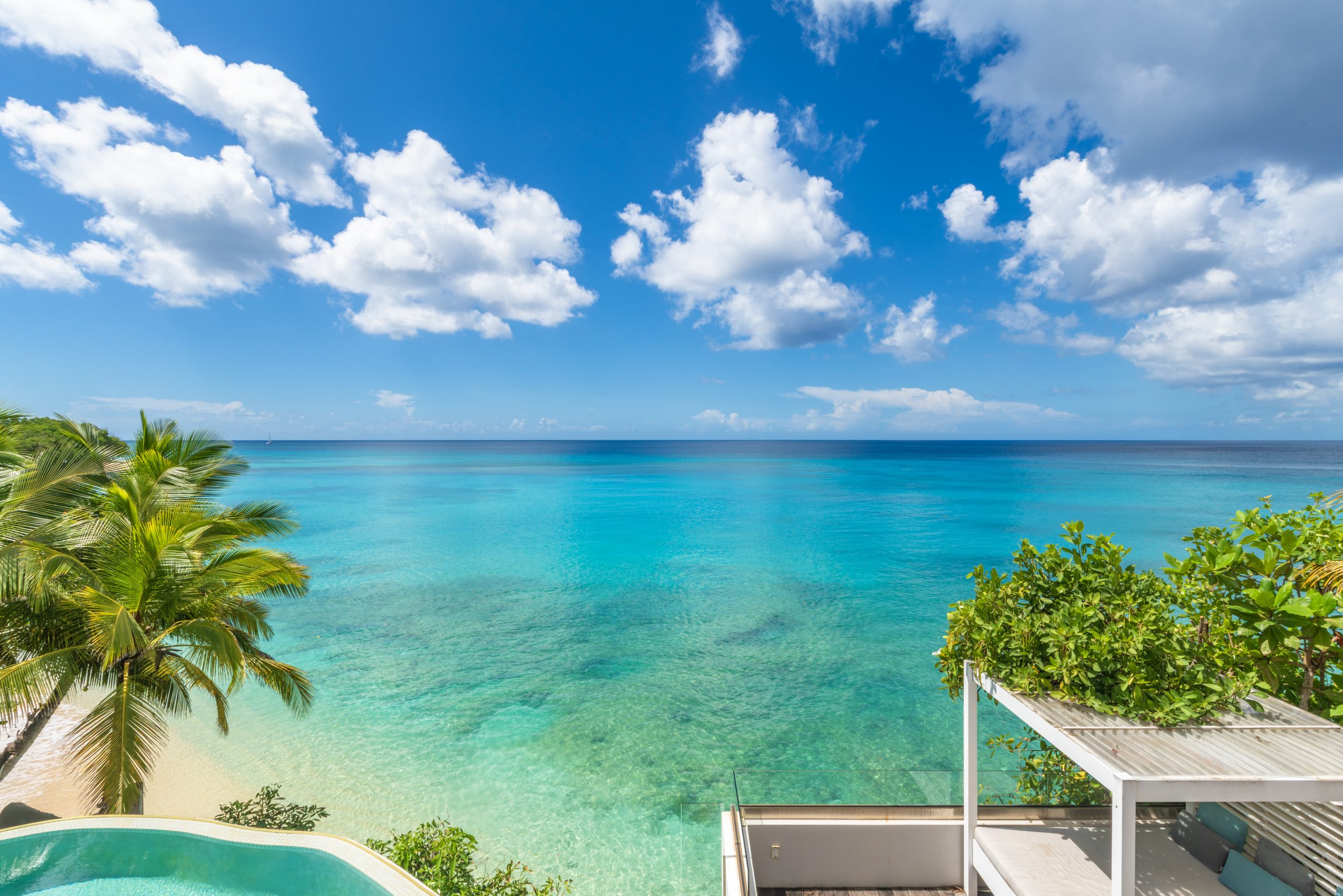 This stunning oceanfront villa delivers effortless luxury with a clean, modern design that fully embraces its dramatic coastal setting. Expansive terraces cascade toward the sea, anchored by a beautifully contoured infinity pool that appears to spill directly into the turquoise water below. Warm wood accents and crisp white architecture create a refined yet relaxed Caribbean feel, while covered and open-air living spaces offer seamless indoor-outdoor flow for lounging, dining, and entertaining. With unobstructed views, direct proximity to the water, and multiple vantage points designed to showcase the horizon, the property offers a true “on the edge of the world” experience that feels both visually striking and deeply liveable.